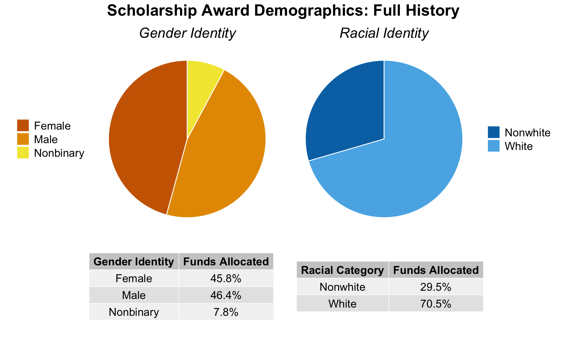 While we are only publishing data regarding our scholarship awards, our historical application data suggests that the demographics of those who have received scholarships are close to that of our wider applicant pool.